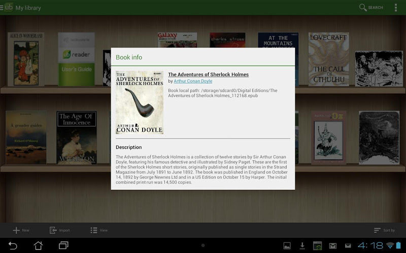 The application comes with stylish and user-friendly interface and provides most comfortable reading experience for both Android smartphones and tablets. An integrated file browser allows users to read any eBook, stored on your device. UB Reader opens Adobe DRM protected files in EPUB format and PDF files.